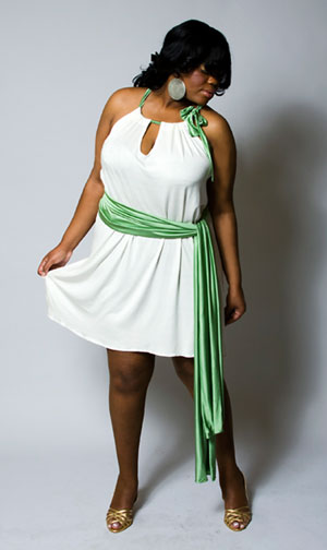 The T-Shirt Tie Dress, available in White with Green Tie, for $140, sizes L to 4XL.